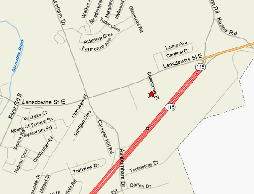 Coming from the 401: Take the 115 turn off and go North. Keep going until you hit Peterborough. Peterborough has 4 interchanges you want to go to the last one where the 115 ends. Turn left on Lansdowne Street E and take your first left after the O.P.P. Station which is Consumers Place.